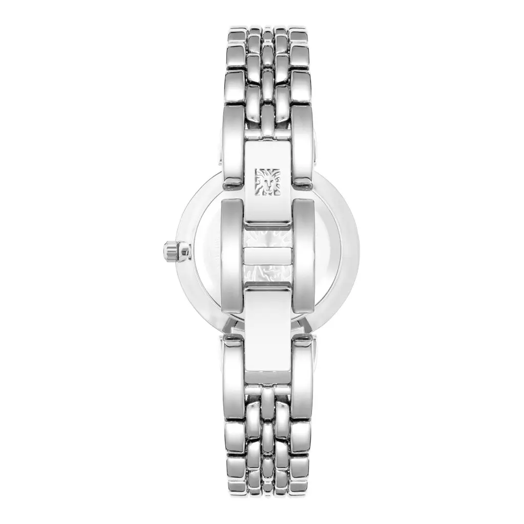 El AK/2159SVSV de Anne Klein es un reloj analógico de pulsera para mujer que combina un diseño sobrio y atemporal con materiales de buena calidad. Su caja y brazalete de acero inoxidable plateado, junto con la esfera en tono plata y marcadores de números romanos, ofrecen una estética elegante que funciona tanto con looks formales como casuales.